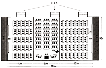 スクール形式 : 800席 シアター形式 : 900席 ロの字形式 : 160席 |